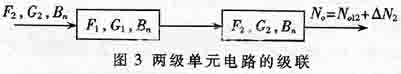 其中No12是由于第一级单元电路的噪声在第二级单元电路输出端呈现的额定噪声功率,ΔN2是由于第二级单元电路所产生的噪声功率,且